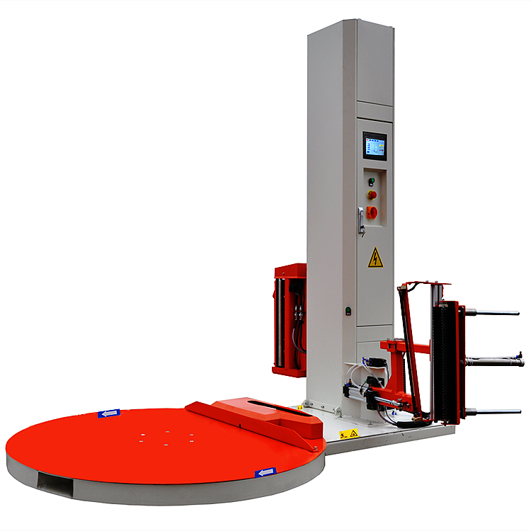 托盤纏繞機(jī)是指通過轉(zhuǎn)臺(tái)旋轉(zhuǎn)帶動(dòng)托盤貨物轉(zhuǎn)動(dòng),進(jìn)而實(shí)現(xiàn)對(duì)貨物纏繞裹包的設(shè)備。適用于使用托盤裝運(yùn)的貨物包裝(如用于大宗貨物的集裝箱運(yùn)輸及散件托盤的包裝等),廣泛應(yīng)用于玻璃制品、五金工具、電子電器、造紙、陶瓷、化工、食品、飲料、建材等行業(yè)。能夠提高物流效率、減少裝運(yùn)過程中的損耗。具有防塵、防潮、降低包裝成本等優(yōu)點(diǎn)。